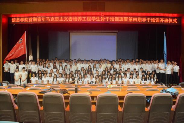 5月15日上午,在校团委和学院党委的指导和大力支持下,信息学院首期青年马克思主义者培养工程学生骨干培训班暨第四期学干培训开班仪式在湖光校区多功能厅举行,校团委副书记袁仁广、信息学院党委副书记聂杰、院团委书记姚阳以及辅导员杨福光等老师以及400多名学生干部参加了开班仪式,会议由姚阳主持。