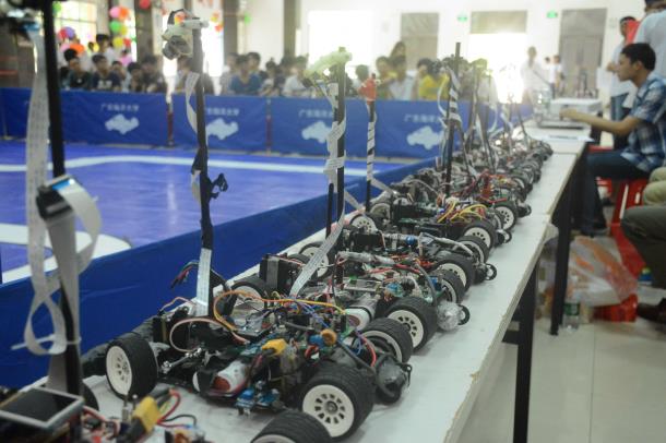 本次比赛由来自信息学院和理学院的共19支参赛队伍组成,按赛车识别路径的方式分摄像头组、光电组和电磁平衡组三个赛题组,分别根据车载摄像头、CCD和电磁感应设备自动循迹。赛道全程31米,宽45厘米,由直道、S弯、直角弯和十字交叉口等元素构成。比赛分上、下两个半场,上半场赛车顺时针行驶,下半场赛车逆时针行驶,以顺利跑完全程的最短时间作为最后成绩。