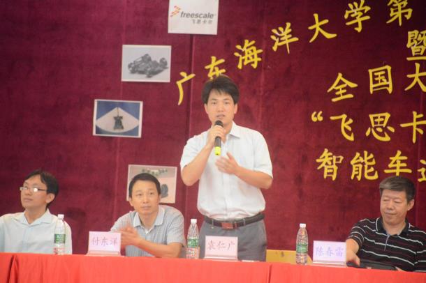 最后,袁仁广对本次比赛作了总结发言,他用“高大上”概括了对本次比赛的感受,对比赛的组织和各参赛队伍的表现给予了高度的肯定。同时,他还希望越来越多的同学参与到智能汽车比赛中来,不断提高自己的实践动手能力,并祝欧冠的智能汽车比赛越办越好。