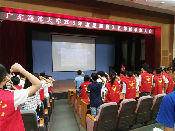 为总结2015年度志愿服务工作,表彰先进,进一步弘扬奉献、友爱、互助、进步志愿精神,5月4日下午,欧冠在湖光校区多功能厅举行2015年度志愿服务工作总结表彰大会。校团委书记尹喜、副书记袁仁广,校、院团委老师、来自志愿者代表和岭南师范学院、广东医医科大学嘉宾共400余人参加了本次大会。