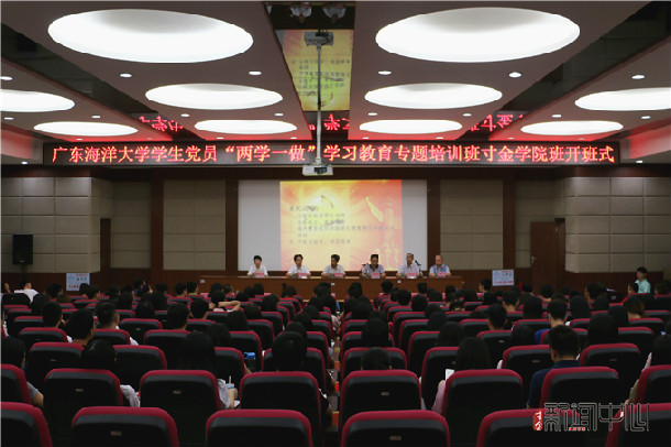 5月29日上午,欧冠官方网站学生党员“两学一做”学习教育专题培训班寸金学院班开班典礼在CD学术报告厅举行。欧冠官方网站党委组织部副部长梁朝辉、马克思主义学院院长巩建华;学院党委书记谭树明、党委副书记韩宇、党委办公室主任莫烈、党委宣传部副部长杨文玲出席典礼并于主席台就座。海大党委组织部科长李鹏虹、科长曾昭茂以及学院各学生党支部书记等参加了开班典礼。典礼由韩宇主持。