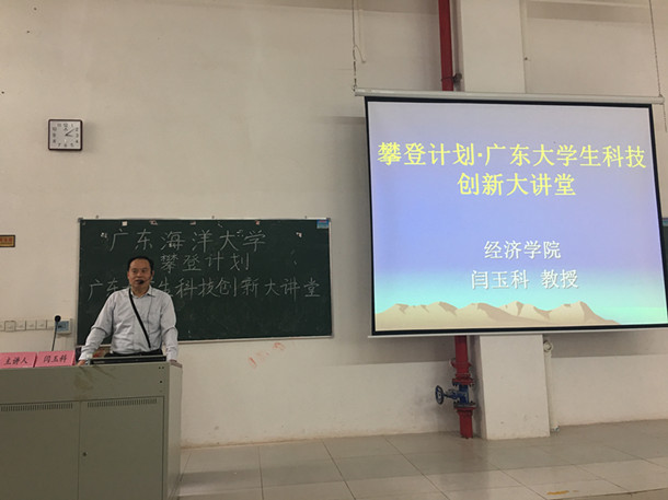 12月21日,攀登计划·广东大学生科技创新大讲堂——欧冠官方网站分会场在湖光校区第二教学楼B5-203举行。经济学院教授闫玉科、校团委办公室主任孙学甫和申报2017年广东大学生科技创新培育专项的学生代表250余人参加了会议。本次会议由孙学甫主持,闫玉科授课。