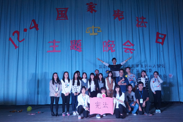 12月3日晚上,由规划与法规处、校团委主办,法律援助协会承办的"12.4”国家宪法日主题晚会”在海滨校区羽毛球馆举行。规划与法规处副处长吴汉华,学生处杨震,法政学院卢灿丽、邱日梅、刘娟等老师,青年志愿者协会各部门,社团联合会主席团、办公室以及各部门。
