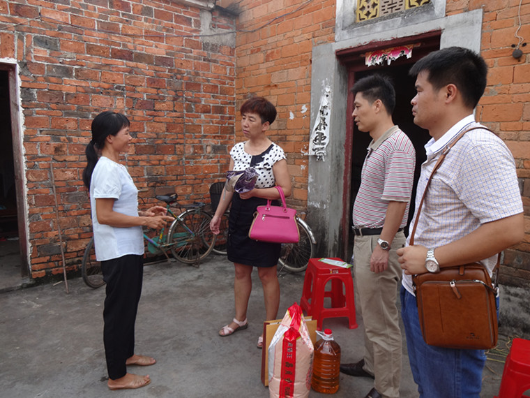 在村委会,董萍等与村委书记与扶贫驻村工作队队长兼第一书记植秀成进行座谈交流,了解学院扶贫对象的当前状况以及帮扶工作进展情况。大家分析了帮扶对象家中情况,商量具体帮扶举措。随后到帮扶对象家中看望贫困户,并送上大米、食用油以及月饼等节日慰问品。