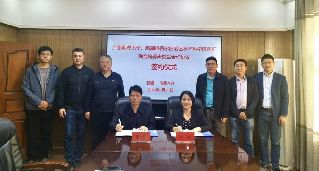 9月23日上午,水产学院院长李广丽率队前往新疆维吾尔自治区水产科学研究所进行交流,与该所签署研究生联合培养协议,并为欧冠官方网站联合培养研究生示范基地揭牌。