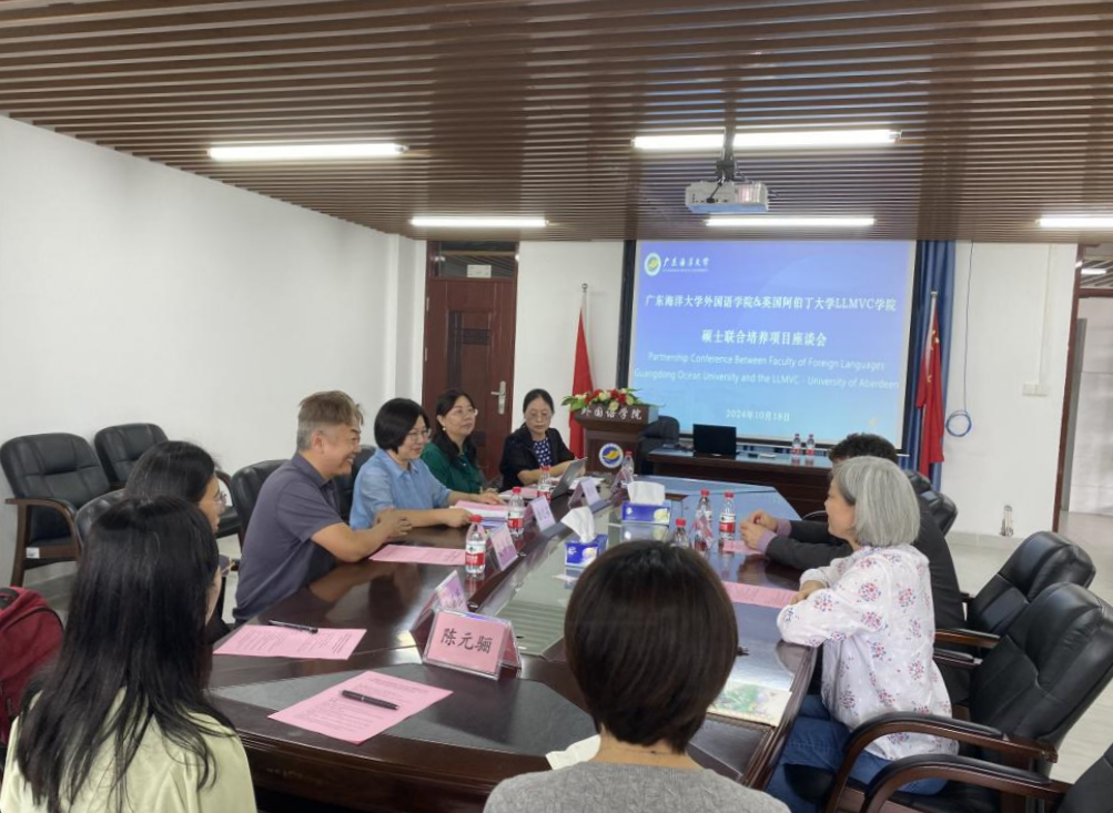 10月18日,英国阿伯丁大学语言、文学、音乐、视觉文化学院(LLMVC)院长克里斯·柯林斯(Chris Collins)教授及国际推广部主任朱珠博士到外国语学院访问交流。外国语学院院长金志茹、副院长安丰科及部分英语系教师代表参加相关会议。