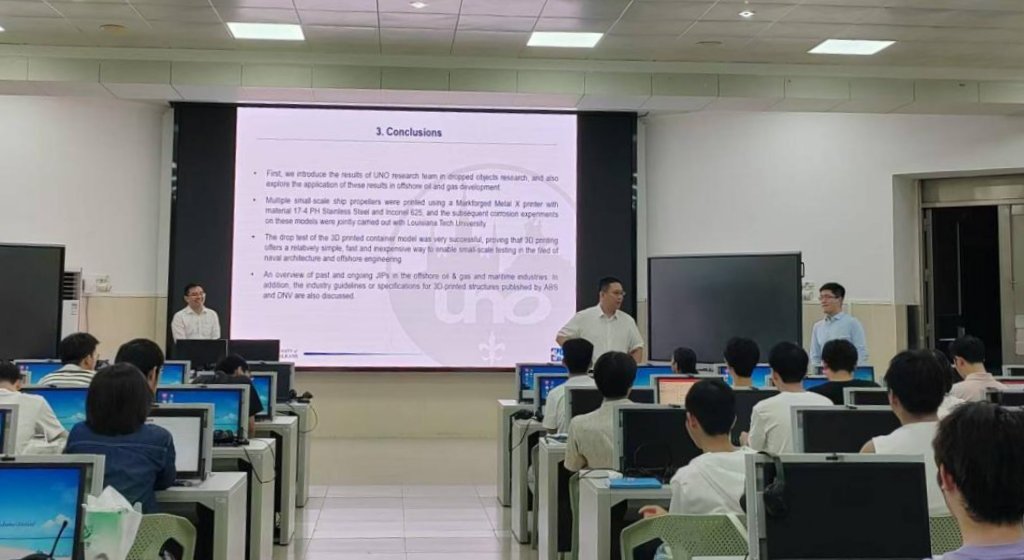 10月17日,应圣彼得堡船舶与海洋技术学院邀请,美国新奥尔良大学副教授余小川博士在欧冠湖光校区兴教楼110会议室为师生们带来了一场题为《海上作业中坠物的运动模拟与危险性评估及3D打印在海洋工程中的应用》的学术报告。圣彼得堡船舶与海洋技术学院党委副书记黄蔡芹、副院长刘畅、海洋工程系主任李逸及圣彼得堡学院、船舶与海运学院和电子与信息工程学院的150余名师生参加了报告会。本次会议由李逸主持。