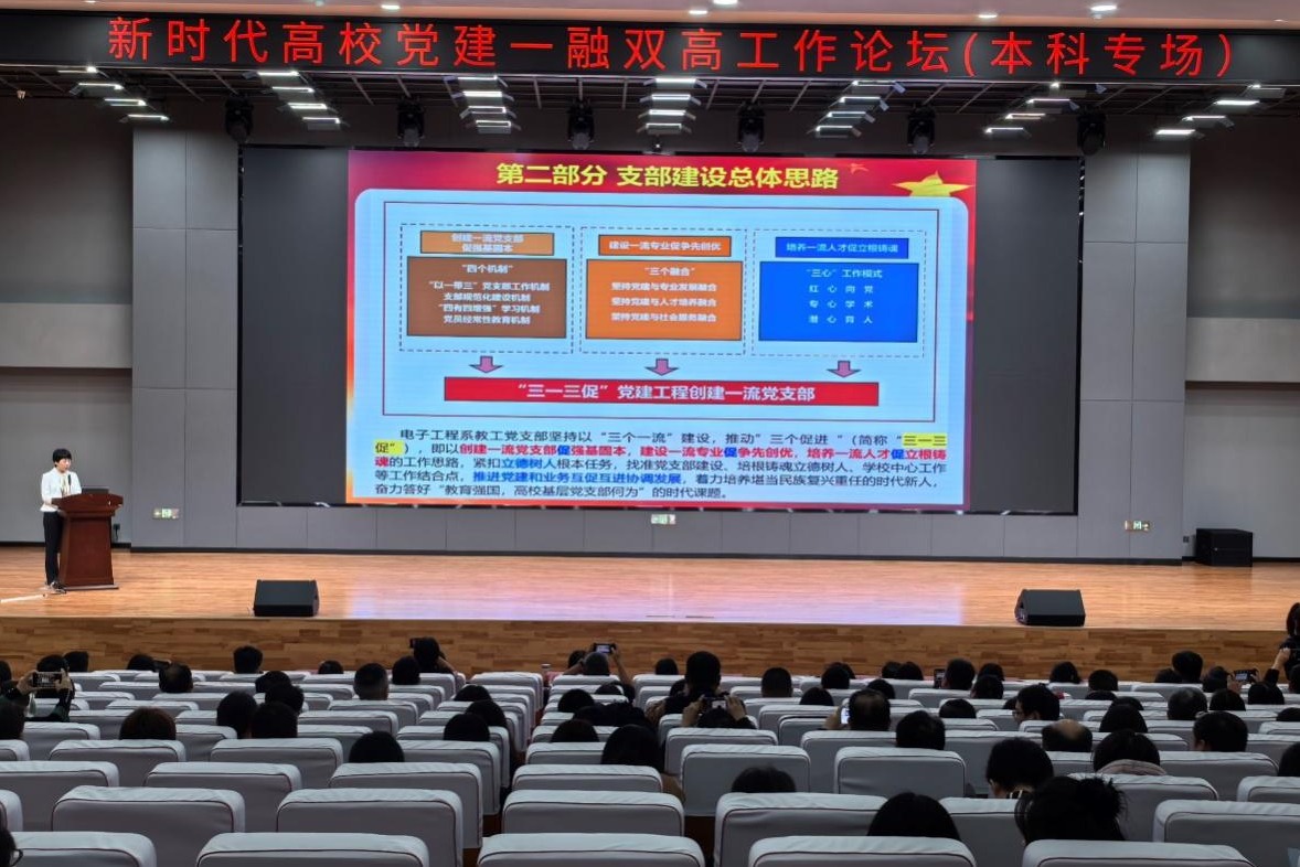 学校电子与信息工程学院电子工程系教工党支部获批第四批“全国党建工作样板支部”培育创建单位,电子工程系教工党支部书记工作室入选全国高校“双带头人”教师党支部书记“强国行”专项行动团队,李灿苹作为党支部书记,受邀在此次论坛上作党建工作经验分享。她以“全国高校‘党建工作样板支部’创建经验分享” 为主题,结合充实的案例素材,从支部简介、支部建设总体思路、支部建设举措、支部未来发展规划和建设目标、宣传报道等五个方面详细分享了实践经验。