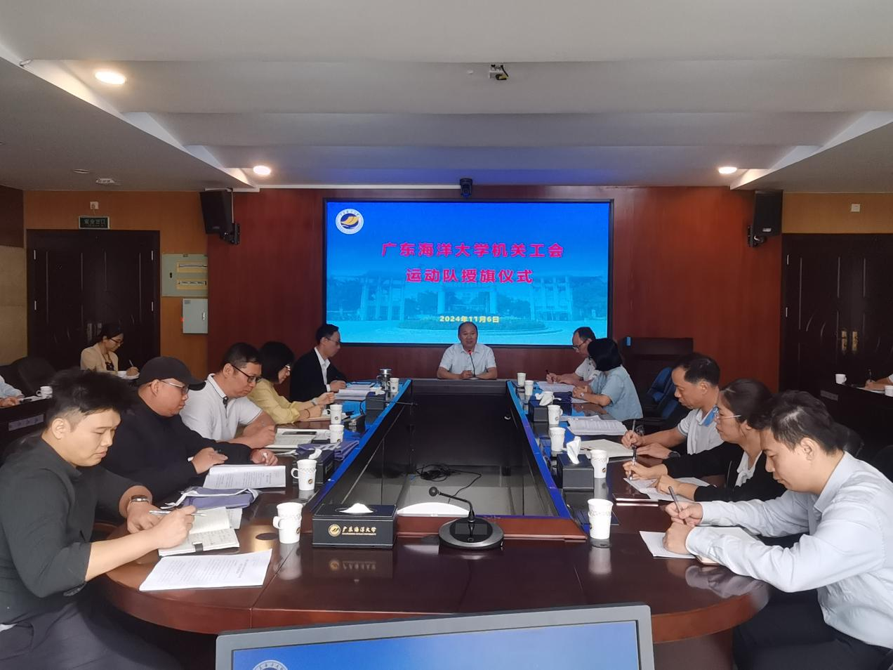 11月6日上午,机关工会在湖光校区行政楼四楼会议室召开委员会会议暨机关工会运动队授旗仪式,学校党委常委、副校长、体育运动委员会主任邓逢光出席会议并为运动队授旗,机关工会主席李鹏虹主持会议。