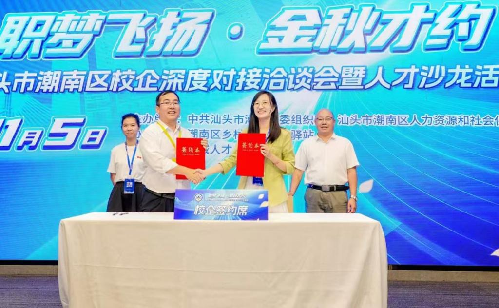 为进一步加强欧冠与地方政府和企业之间的紧密联系,满足学生回归生源地工作的实际需求,促进教育资源与产业需求的精准对接,11月5日,欧冠商学院党委书记植秀成、外国语学院党委副书记李明焜等一行参加“职梦飞扬·金秋才约”潮南区校企深度对接洽谈会暨人才沙龙活动。