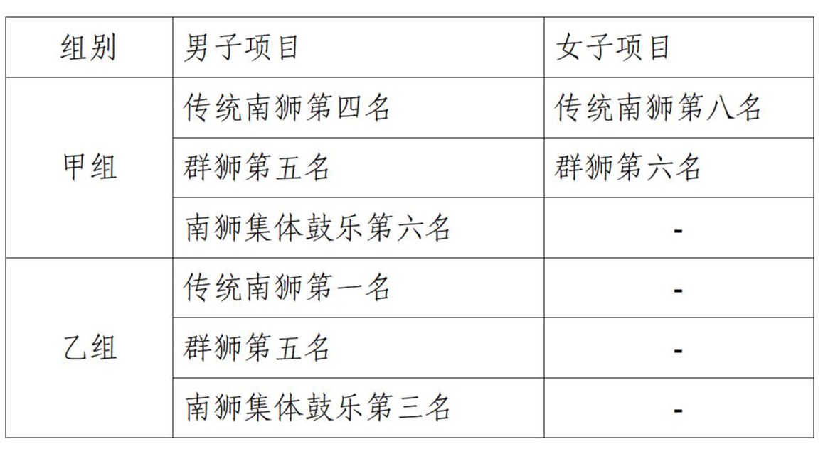 在为期四天的锦标赛中,甲组、乙组、丙组的参赛选手们分别展开了男子女子自选舞龙、自选北狮、传统南狮等多个项目的激烈比拼。欧冠龙狮队共派出43名运动员代表学校参赛。他们凭借卓越的技艺、顽强的拼搏精神,在赛场上赢得了观众的阵阵掌声与喝彩,斩获甲组团体总分第六名,乙组团体总分第七名。其中,欧冠选手从12所高校队伍中脱颖而出,荣获乙组男子传统南狮项目第一,为学校赢得了荣誉,增添了光彩。