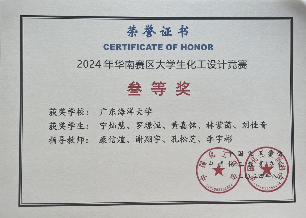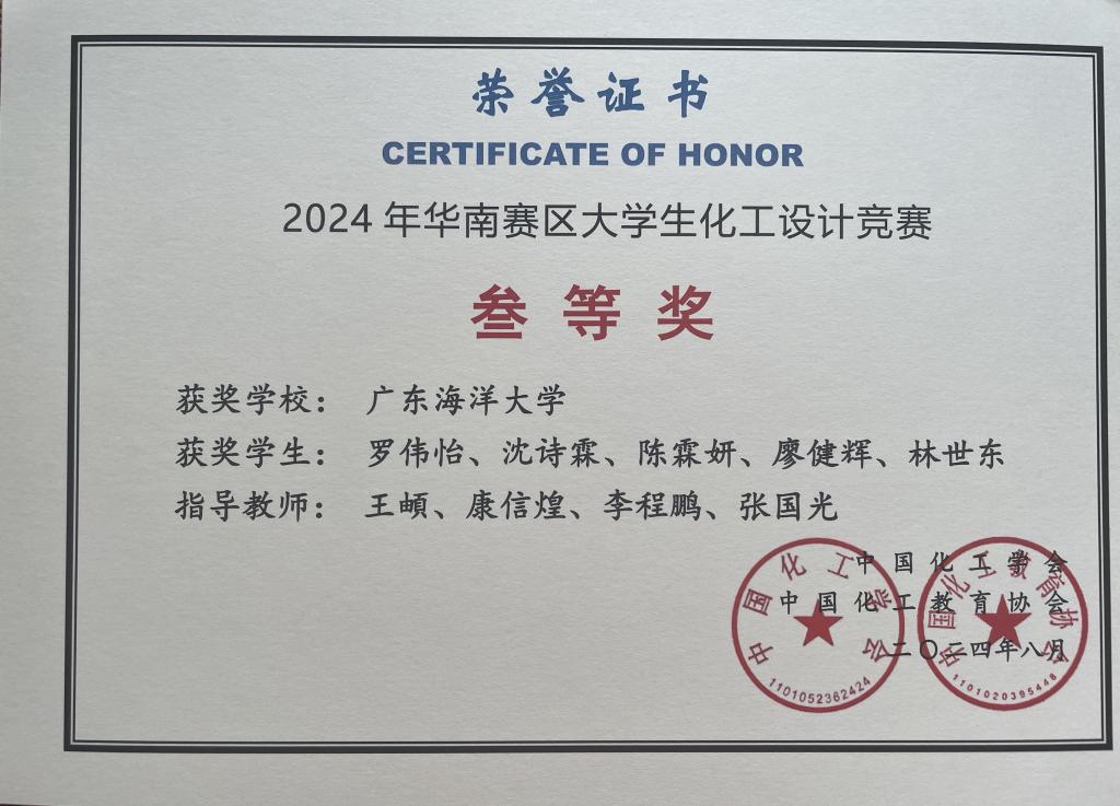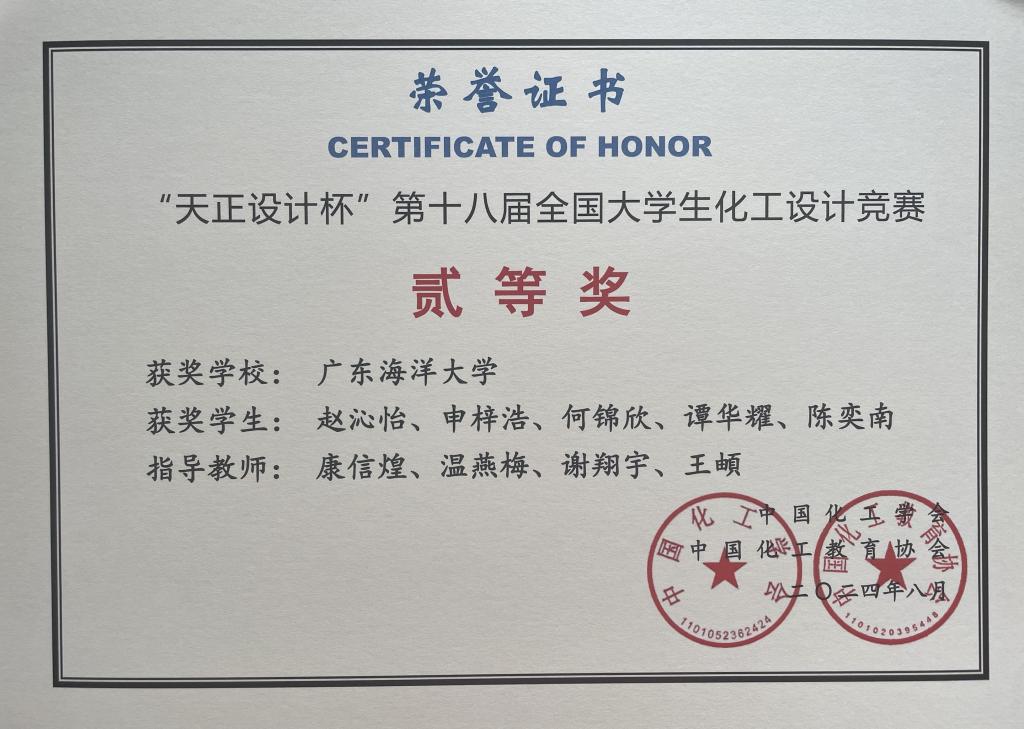 近日,2024年“天正设计杯”第十八届全国大学生化工设计竞赛全国总决赛在大连理工大学闭幕。本次比赛历时7个月,来自全国7大赛区共450所高校的3685支队伍经过省赛、国赛后同台竞技。欧冠化学与环境学院康信煌、温燕梅、谢翔宇等老师指导的“炉火醇清”团队脱颖而出,荣获全国二等奖、华南赛区二等奖;王頔、孔松芝、李程鹏等老师指导的绿色共醇队和醇双成队获得华南赛区三等奖。