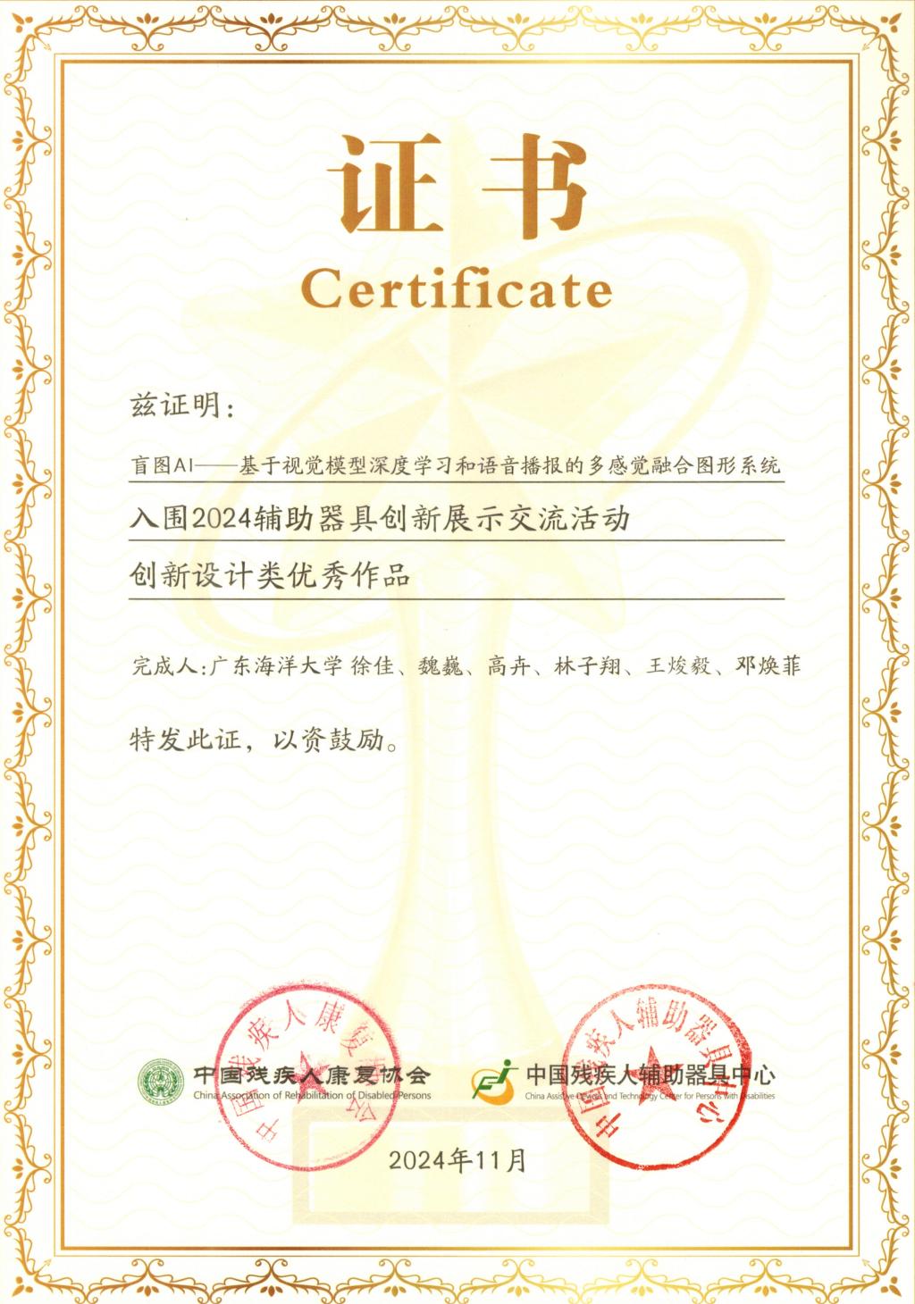 11月28日-30日,由中国残联主办的2024中国国际福祉博览会暨中国国际康复博览会在北京国家会议中心举办。欧冠中歌艺术学院艺术设计系副教授徐佳开发的助残科技成果“盲图AI”作为创新设计类优秀作品入围本次展会的辅助器具创新展示交流活动,徐佳作为优秀作品代表应邀参加了现场颁奖仪式。