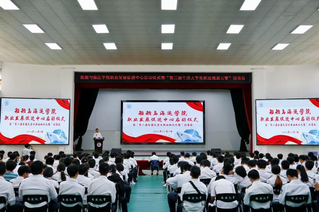 12月4日下午,船舶与海运学院在海滨校区礼堂举办“大学生职业发展促进中心”启动仪式暨“第二届全国大学生职业规划大赛”动员会。学院党委书记邓朝晖,院长贾宝柱,正处级辅导员、党委副书记齐昊,全体学工半军管人员及300余名学生参加了本次活动,活动由齐昊主持。