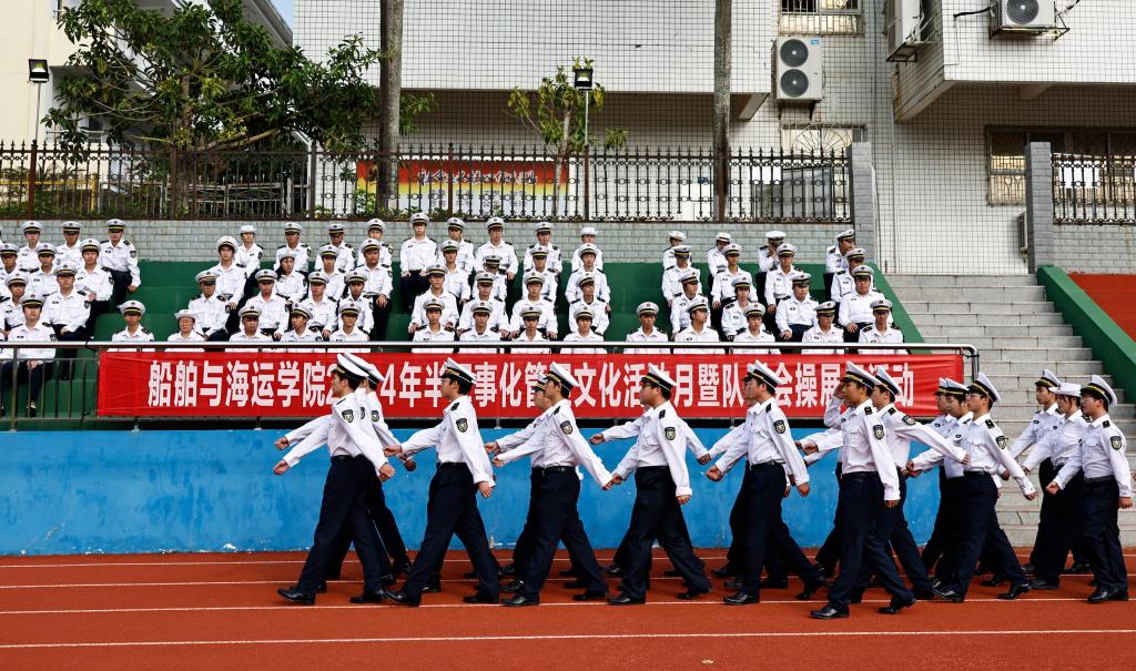 12月7日下午,船舶与海运学院在海滨校区运动场举行了2024年半军事化管理文化活动月暨队列会操展示活动。学院党委书记邓朝晖,正处级辅导员、党委副书记齐昊,校学生工作部学生管理科,校党委武装部军事教育科相关负责人,及2024级海上专业300余名同学等参加了活动,活动由学院半军管大队长江涛主持。