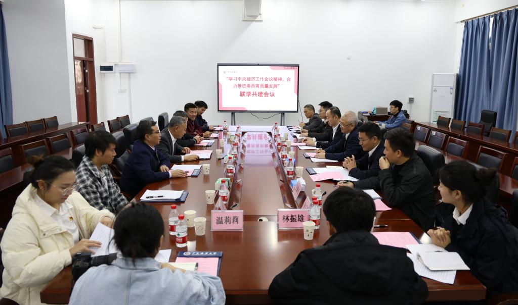 为探索党建多方共建,形成优势互补格局,12月18日,湛江海关综合处党支部、湛江市政府研究室党支部和欧冠经济学院党委在湖光校区联合开展主题为“学习中央经济工作会议精神,合力推进粤西高质量发展” 的关地校党组织联学共建活动。湛江海关党委委员、副关长余立新,湛江市政府研究室党组成员、副主任、党支部副书记蔡延鹏,学校党委常委、宣传统战部部长林宇出席活动。活动由林宇主持。