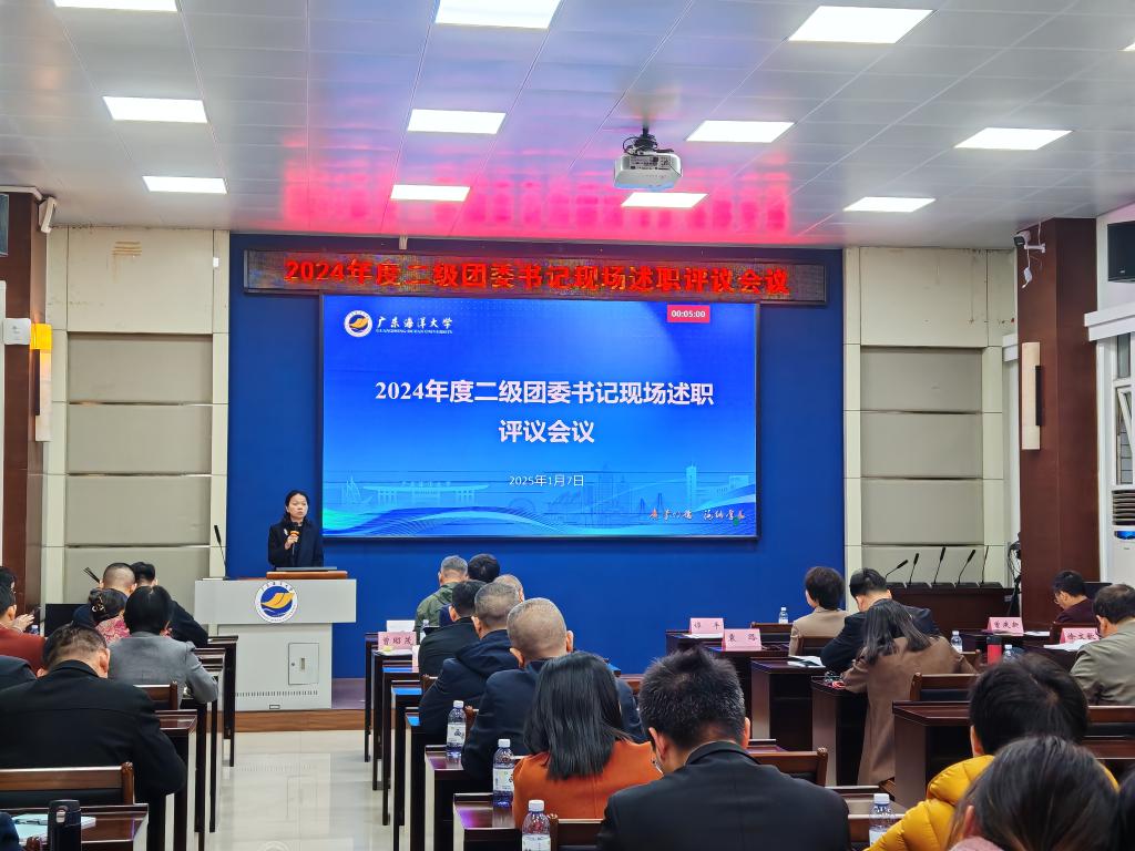 1月7日上午,学校在湖光校区水生生物博物馆会议厅召开2024年度二级学院团委书记述职评议大会。学校党委副书记谭平,部分职能部门负责人、学院分管学生工作领导及学生代表出席会议,陈景阳等18名二级团委书记参加述职。会议由校团委书记袁路主持。