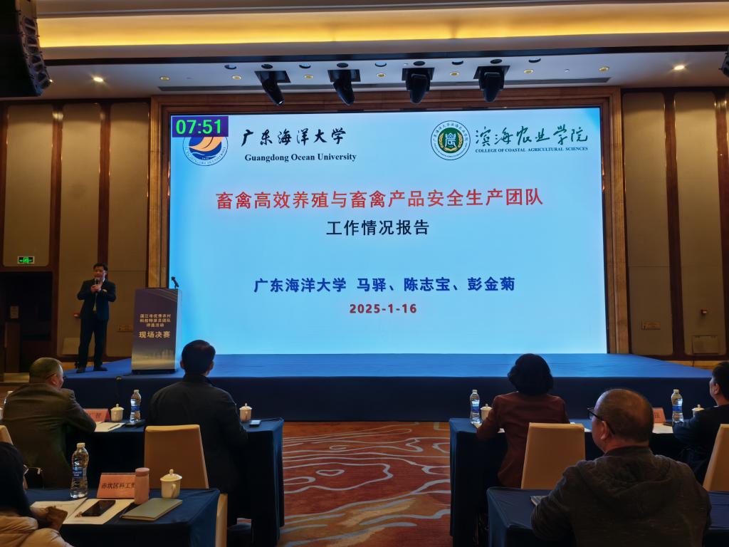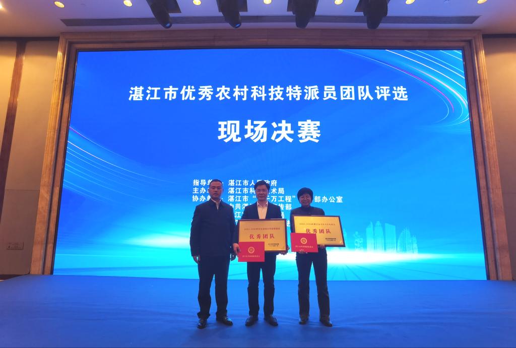 1月16日,湛江市优秀农村科技特派员团队评选活动决赛在湛江民大喜来登酒店举行,欧冠滨海农业学院两个团队荣获“2021-2024年湛江市优秀农村科技特派员团队”称号。湛江市人民政府副秘书长刘志红、湛江市科学技术局局长江强等领导出席,专家组、参赛单位代表、新一轮百千万工程科技特派员团队负责人及成员约200人参加活动。