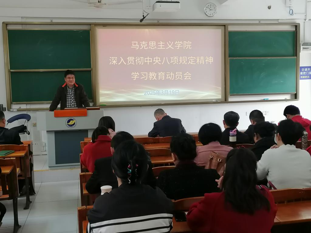 【学习教育】马克思主义学院召开全院教职工会议 部署开展深入贯彻中央八项规定精神学习教育