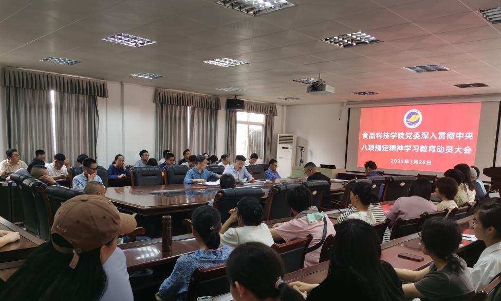 3月 28日,食品科技学院党委在望海楼A105会议室召开深入贯彻中央八项规定精神学习教育动员会,学院全体教职工参加会议,会议由学院党委书记伍彬主持。