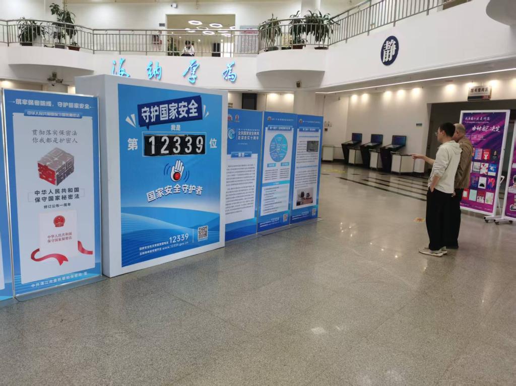 活动期间,校团委、保卫部组织学生参与湛江市国家安全人民防线建设工作小组拍摄宣传视频,作为广东省开展全民国家安全教育日宣传片的重要内容,不断提升广大师生对总体国家安全观的认识,推动国家安全宣传教育入脑入心;图书馆在入馆口摆放了国家安全宣传教育展板,通过理论阐释、案例解读等方式,诠释总体国家安全观的深刻内涵要义,推动大安全理念深入人心;宣传统战部在学校网站开设全民国家安全教育日专栏,在湖光校区海念、海园学生公寓大院设置了宣传栏,通过行政楼、广学楼及南门电子屏播放宣传标语和宣传画;学生工作部向学生推送国家安全宣传教育学习资料;保卫部在部门网站发布全民国家安全教育宣传手册、宣传片,利用校内电子屏滚动播放《守护·十年》宣传片,营造了浓厚的宣传教育氛围。