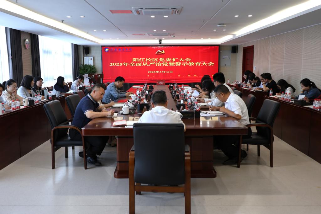 为深入贯彻落实全面从严治党要求,推进深入贯彻中央八项规定精神学习教育走深走实,4月16日上午,阳江校区在海纳楼712会议室召开全面从严治党暨警示教育大会,总结校区2024年全面从严治党工作,部署2025年全面从严治党重点工作任务。受学校党委常委、副校长,阳江校区党委书记、管理办公室主任周昌仕的委托,校区党委副书记丁永成主持会议。校区党委副书记麦冬宁、各职能部门负责人以及机关全体人员参加会议。