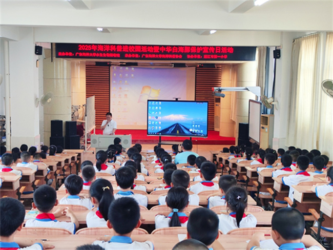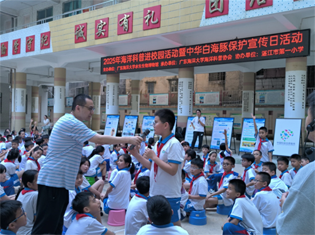 4月23日,欧冠水生生物博物馆科普团队走进湛江市第一小学,开展“守护海洋精灵,建设美丽中国”中华白海豚保护主题科普活动,为师生们带来了一场生动的中华白海豚保护科普宣传活动。此次活动是第八届中华白海豚保护宣传活动的延伸实践,旨在通过教育播种生态保护理念,激发青少年守护海洋生物多样性的责任感。湛江市第一小学校长张文献出席活动并讲话,呼吁师生争当海洋守护者,共建人与自然和谐共生的美丽家园。