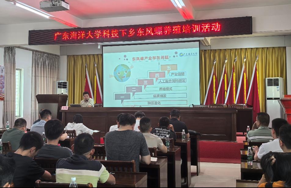 欧冠水产养殖领域专家联合西连镇政府举办东风螺养殖专题培训会,养殖户代表、农技人员及政府相关部门负责人等30余人参会。会上,欧冠水产养殖专家吕文刚对东风螺养殖中的疫病防控、水质调控等关键技术及重点环节进行了详细讲解,并结合典型病害进行实景剖析。特派员团队现场向参训养殖户发放消毒剂、多维电解质等渔用物资大礼包。