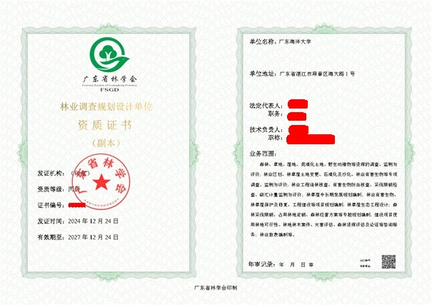 近年来,分析测试中心在资质建设方面取得一系列成果。2024年12月成功取得广东省林学会颁发的林业调查规划设计单位丙级资质证书;此次获批乙级测绘资质,为分析测试中心进一步服务学校科研教学、支撑相关业务开展奠定了坚实基础。分析测试中心将以此为契机,充分发挥科技创新优势,持续提升测绘技术水平,全力打造多元化发展新格局,在激烈的市场竞争中不断增强核心竞争力,书写高质量发展新篇章。