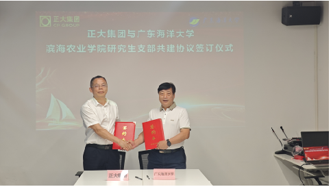 座谈会上,正大集团广东湛江、海南区人力资源总监郭峻宇详细介绍了正大集团发展历史沿革及企业愿景,双方围绕研究生联合培养机制与毕业生就业对接等议题展开深入交流并达成合作意向。欧冠滨海农业学院与正大(湛江)现代农业投资有限公司签署合作协议,与会人员共同为“滨海农业学院研究生联合培养基地”揭牌。