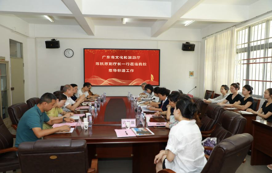 5月22日上午,国家非遗展览展示研究中心(华南展示基地)专家委员会副主任委员、广东省文化和旅游厅原副厅长、一级巡视员陈杭,广东省非遗志愿者联谊会副秘书长李梅、外联部部长李彧等一行就“传承与创新:高校非遗教育融合发展”主题莅临欧冠调研非物质文化遗产保护传承工作。调研座谈会在中歌艺术学院艺海楼A208会议室举行,学校党委常委、副校长邓逢光出席座谈会,麻章区副区长李倩怡,湛江市文化馆馆长、湛江市非物质文化遗产保护中心主任庞洁,学校党委宣传统战部副部长樊云霞以及中歌艺术学院领导班子、教师代表参加座谈会,座谈会由中歌艺术学院党委书记欧卫军主持。