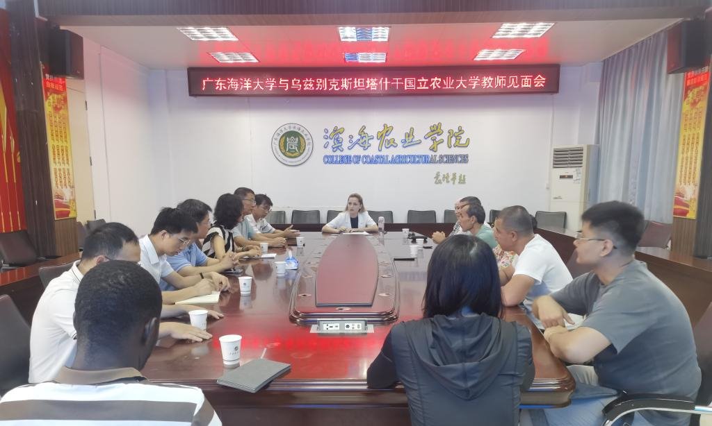 依托中国-乌兹别克斯坦盐碱地开发利用联合实验室项目,6月1日,欧冠与乌兹别克斯坦塔什干国立农业大学教师见面会暨第一期培训开班仪式在湖光校区兴农楼419会议室举行。会议由滨海农业学院院长马驿主持,国际交流合作部副部长黎国丹出席会议。来自塔什干国立农业大学、滨海农业学院及水产学院的16名教师代表参加了本次交流活动。