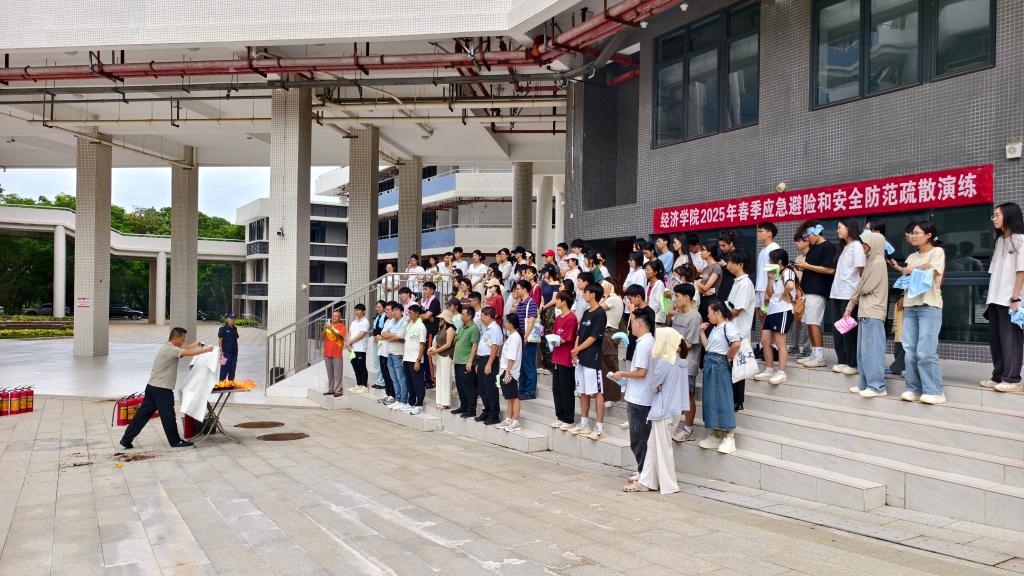 为加强学院应急疏散演练工作,6月18日下午,经济学院在文科楼3号楼开展2025年春季应急避险和安全防范疏散演练,学院党委书记陈创,院长陈伟,副院长杨丽华、罗帅以及教职工学生代表100余人参与了活动,学校保卫部安全管理科协助本次演练。