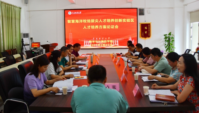 6月23日下午,广东省智慧海洋牧场拔尖人才培养创新实验区人才培养方案论证会在欧冠湖光校区明德楼A1座405会议室举行。