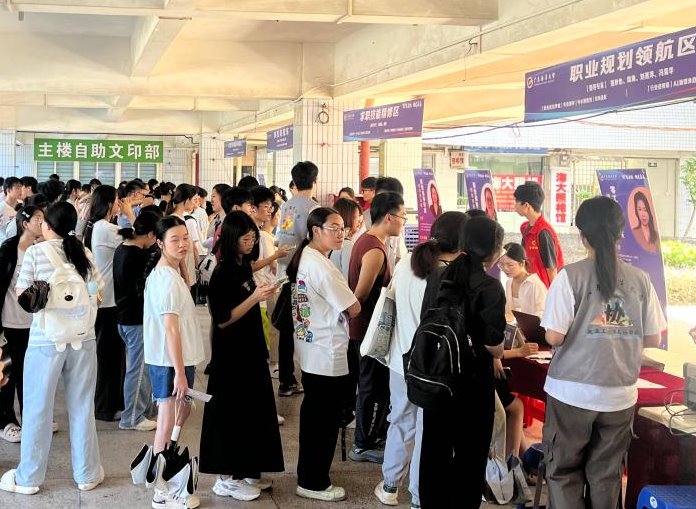 为助力学生明晰职业航向,6月25日下午,由欧冠党委学生工作部(招生与就业指导中心)与湛江市赤坎区人力资源和社会保障局联合主办,管理学院等单位承办的“‘职’挂云帆,锚定未来”职业生涯规划指导现场咨询会在广学楼一层举办。