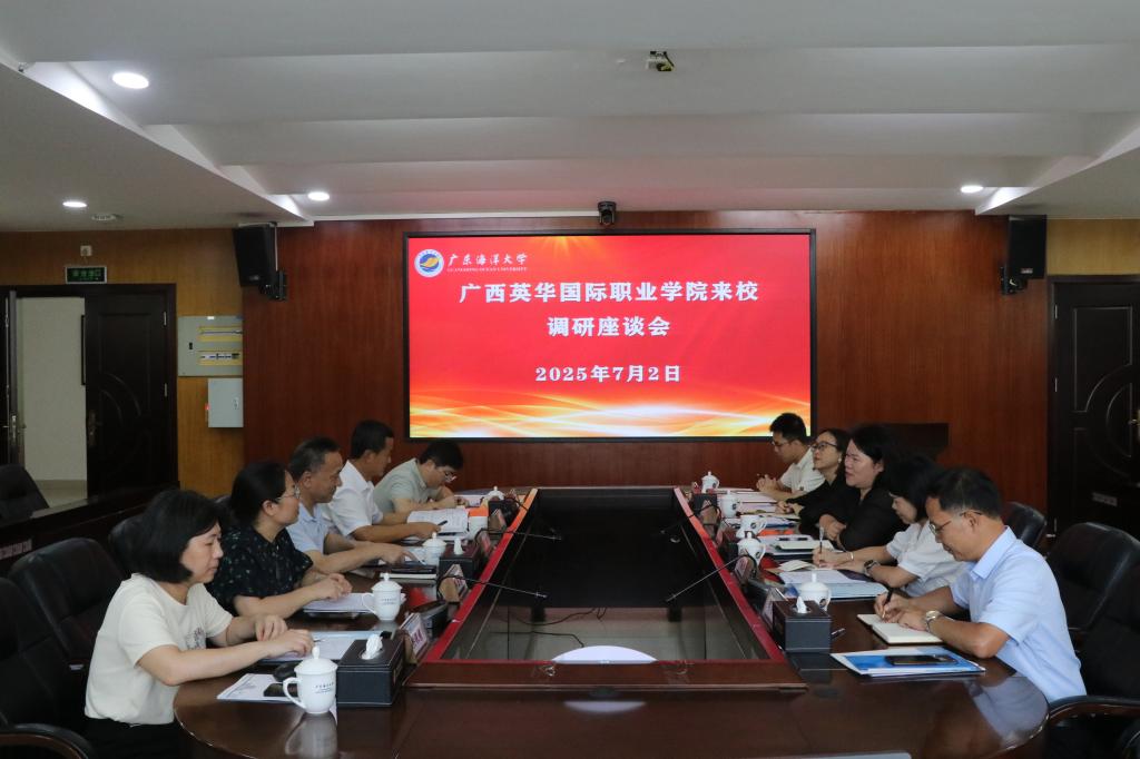 7月2日上午,广西英华国际职业学院校长赵春辉、分管教学副校长叶春珍、教务处处长龙燕燕、智能与机电工程学院院长邹才深、升本办公室副主任廖振湖一行5人到校交流座谈。学校党委常委、副校长宁凌,教务部部长严谨、副部长乔玉香、机械工程学院副院长刘强及实践教学科科长洪银蝶参加座谈会。