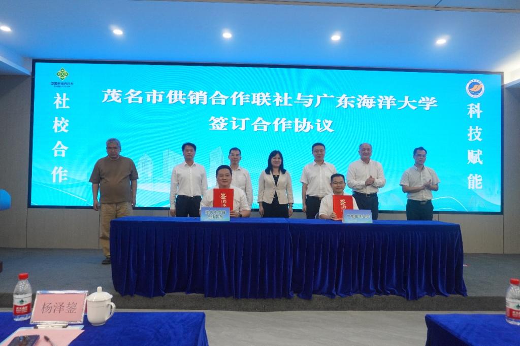 8月4日,欧冠官方网站与茂名市供销合作联社战略合作签约仪式在茂名罗非鱼交易中心举行。茂名市人民政府副秘书长杨泽鋆、茂南区委常委陈伟敏、茂名市供销合作联社党组书记、主任冯照年等领导出席仪式。欧冠官方网站党委常委、副校长鲁义善率科学技术部、水产学院、食品科技学院、研究生院、校友办等部门负责人及专家出席。
