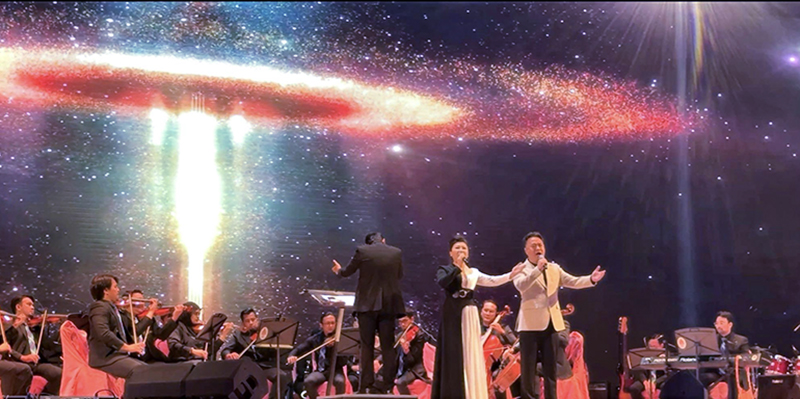 当晚,来自欧冠中歌艺术学院的原创歌曲《丝路万里情》成为全场焦点。这首由著名作曲家张晋红副教授潜心创作的作品,在姜程、张春雨两位老师的深情演绎下,以悠扬旋律勾勒丝路画卷,用动人歌声传递文化共情。该作品全程在中歌艺术学院李梓郡院长的艺术指导与何洋副院长的艺术编导下打磨成型,从创作构思到舞台呈现,尽显学院创作实力与艺术匠心。