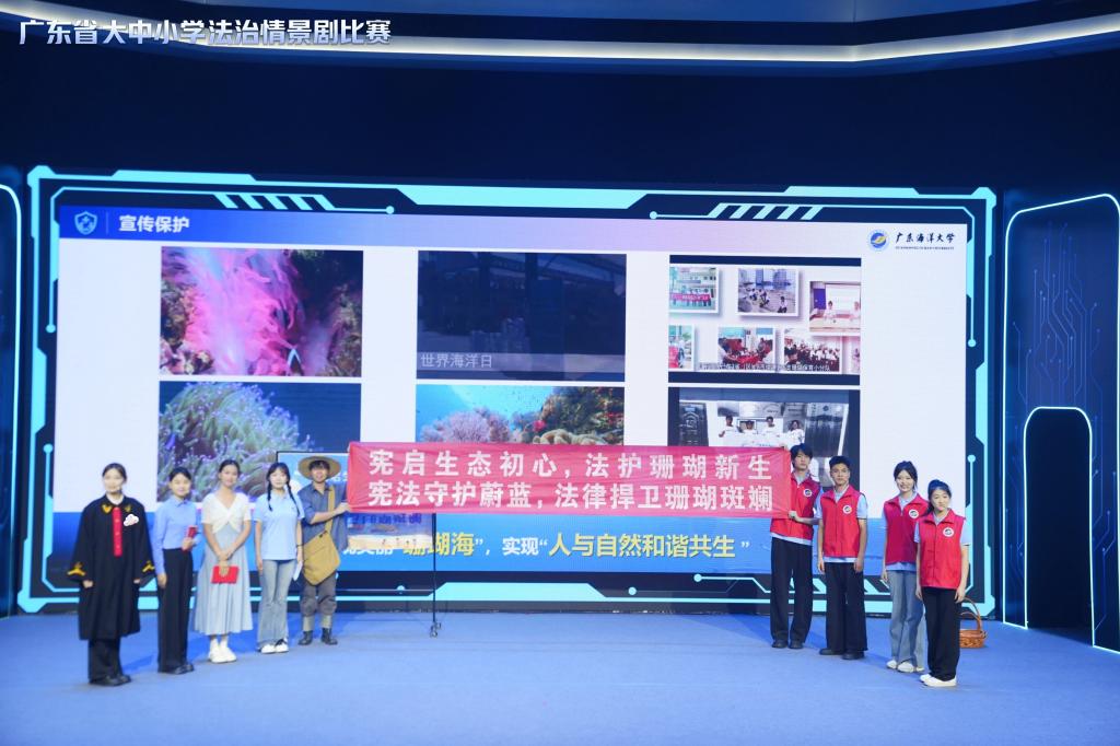 8月31日,由广东省教育厅主办的第十届广东省学生“学宪法 讲宪法”活动之大中小学法治情景剧比赛现场决赛在广东财经大学(广州校区)举行。欧冠原创法治情景剧《宪启生态初心 法护珊瑚新生》在高校组激烈角逐中表现出色,以总分第二名的成绩荣获二等奖,并斩获唯一“最佳剧本奖”及“优秀组织奖”,充分体现了欧冠在法治教育与海洋特色育人融合实践方面的成效。