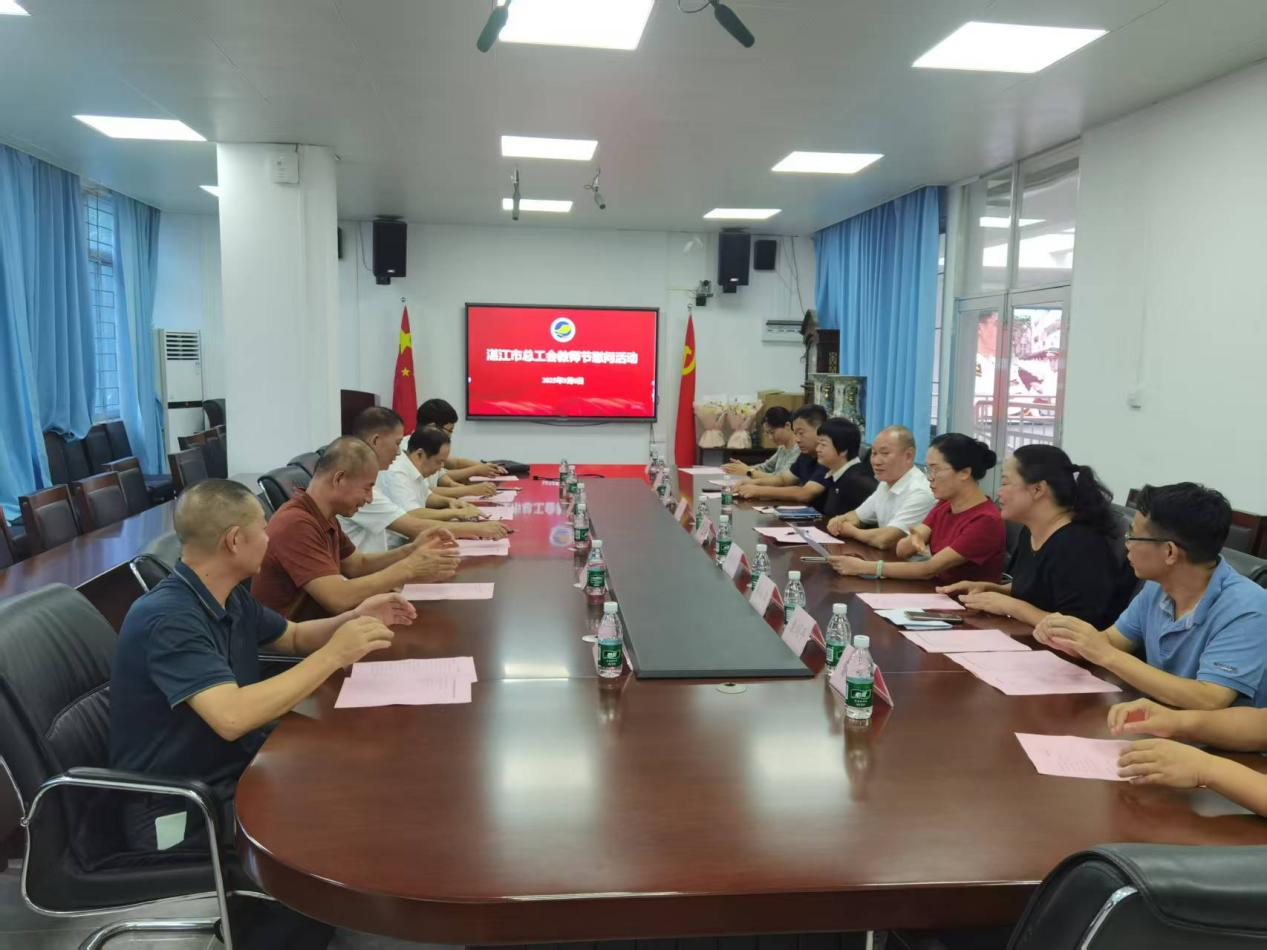 曾海受湛江市委、市政府和市总工会委托,向大家致以节日的问候和崇高的敬意。慰问期间,曾海与教师们亲切交流,详细了解他们的工作及生活情况,对他们在教育教学一线辛勤耕耘、无私奉献表示衷心感谢,并高度赞扬了他们在各自领域取得的优异成绩。曾海表示,教师是教育事业的中坚力量,各位老师用辛勤汗水培育了无数优秀人才,为湛江的教育事业发展作出了重要贡献,希望大家继续坚守立德树人初心,牢记为党育人、为国育才使命,培养更多高素质人才。