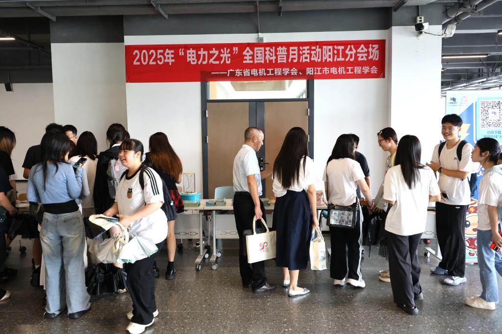 活动现场还开展了专题科普展示。欧冠水生生物博物馆、广东省电机工程学会、阳江市水产学会、阳江市电机工程学会等单位,带来了丰富的科普资源和展品,聚焦阳江在海洋牧场与海上风电领域的创新实践,向公众展示阳江在“向海图强”道路上的科技突破与生态智慧。百屏科普公益巡展(阳江站)活动同步开展,通过AI交互式科普屏,展示了“共和国脊梁——中国科学家博物馆馆藏精品展”“广东省科普作品创作大赛优秀作品展”以及新能源、海洋科普等丰富多彩的内容,让观众沉浸式参与体验。