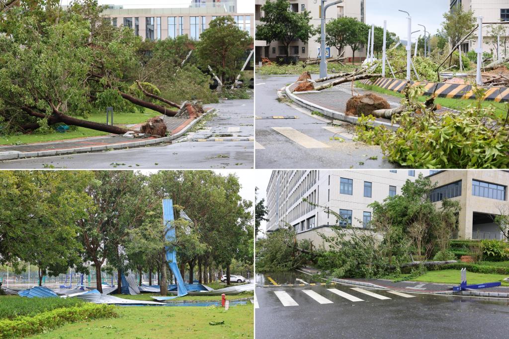 超强台风“桦加沙”于9月24日晚在阳江登陆。台风登陆前夕,阳江校区坚决贯彻上级防风防汛工作指示,成立防风防汛应急工作领导小组,全体党员干部留守校区24小时值班值守,组建党员突击队、学生宿舍网格管理负责人,深入校区食堂、宿舍、教室、办公室、图书馆、校区内施工点开展全方位检查,全面排查整治各类安全隐患,备足应急物资,全力筑牢校园安全防线,为应对台风冲击做好了充分准备。