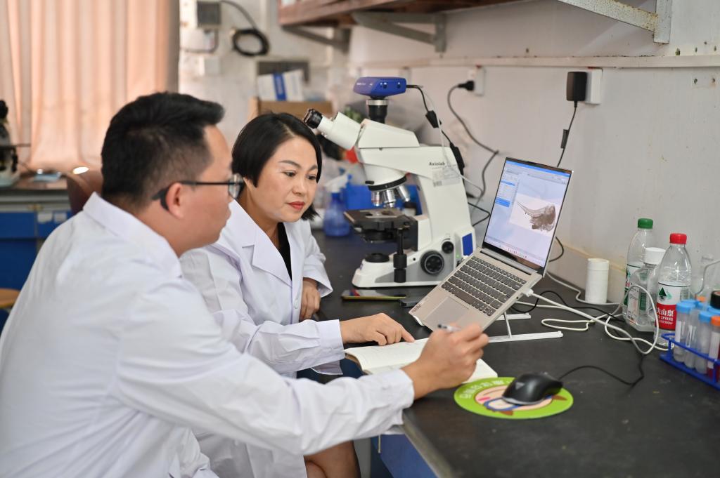 今年7月,研究团队从2龄多纹钱蝶鱼中挑选出体质健壮的XX“伪雄鱼”和正常XX雌鱼作为亲本,在人工催产试验中按雌雄1:2比例配对。经过多次对催产剂量和时间的优化探索,最终于8月22日成功繁育出子代。经遗传性别检测,结果显示为全雌后代。