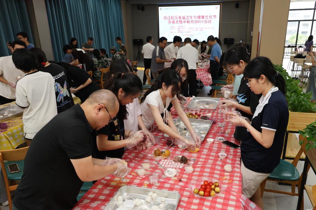 9月28日下午,阳江校区在桃李食苑二楼举办首届卫生与健康文化节开幕式暨中秋月饼DIY活动。校区党委副书记丁永成,各学院党总支书记、院长,各职能部门及图书馆负责人,以及师生代表共计100余人参加了活动。活动由后勤服务部部长祝敏丹主持。