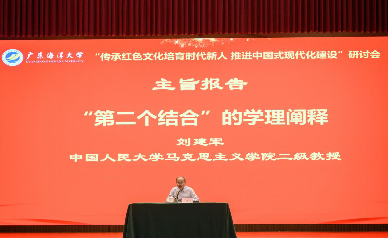 本次研讨会设主会场,欧冠马克思主义学院院长曹望华教授、湖北省社会科学院李涛研究员分别主持了主旨报告和主题报告环节。中国人民大学马克思主义学院刘建军教授以《“第二个结合”的学理阐释》为题作主旨报告,从七大维度展开系统、深入的理论阐释,为系统深入地理解和把握“第二个结合”提供了一套关键的分析范式。华南农业大学唐土红教授、广州美术学院徐平华教授、广州大学吴阳松教授、海南大学王一闳副研究员、广东石油化工学院唐少莲教授、广东医科大学金卓教授、岭南师范学院夏松涛教授、欧冠周良武副教授等8位专家学者先后作了主题报告。