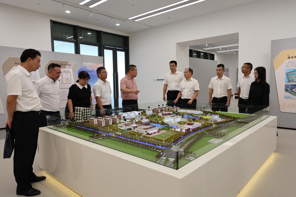 在华南师范大学汕尾校区,调研组参观了汕尾校区展厅、图书馆及校园建设现场,全面了解了该校区建设办学的基本情况与一期建设进展,双方围绕校区建设进展、管理模式、学科布局等内容展开交流,分享了各自的发展经验与未来规划。