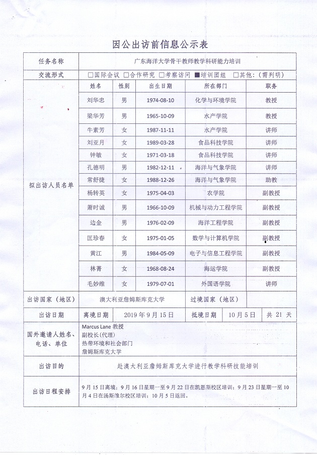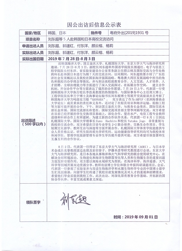 根据《关于进一步规范省部级以下国家工作人员因公临时出国的意见》的要求,现将欧冠官方网站因公出访信息予以公示。公示时间为2019年9月6日至9月12日。如有意见,请在公示期内,向相关单位反映。(国际交流与合作处电话:0759-2396206;纪委办电话:0759-2383501)