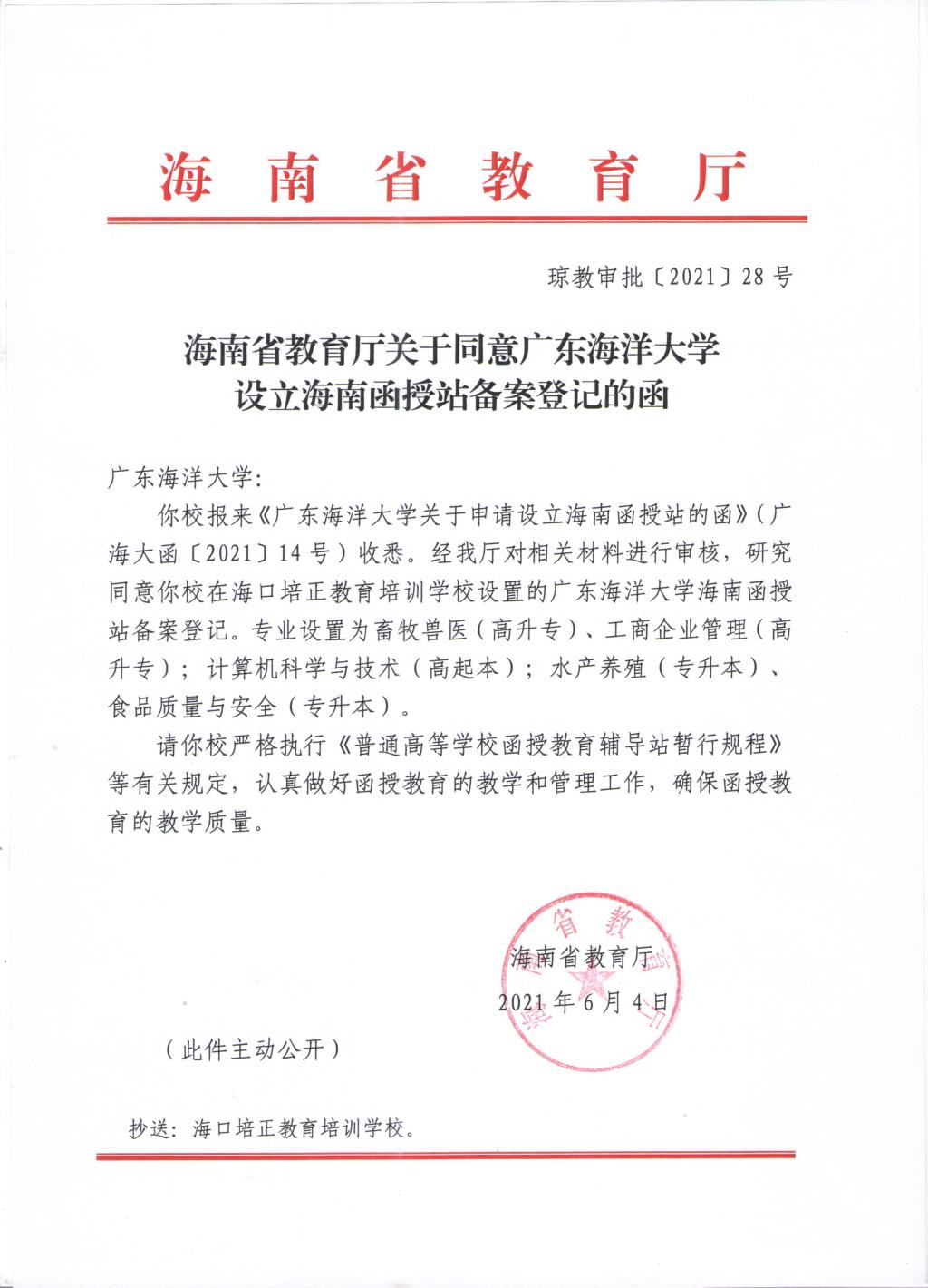 根据《欧冠官方网站成人高等教育校外教学点管理办法》(校成教〔2019〕23号)的要求,结合欧冠未设有广东省外函授站的情况,欧冠向海南省教育厅提交设立海南函授站的申请,经海南省教育厅批复,同意欧冠在海口培正教育培训学校设置成人高等教育海南函授站,现把相关情况公告如下: