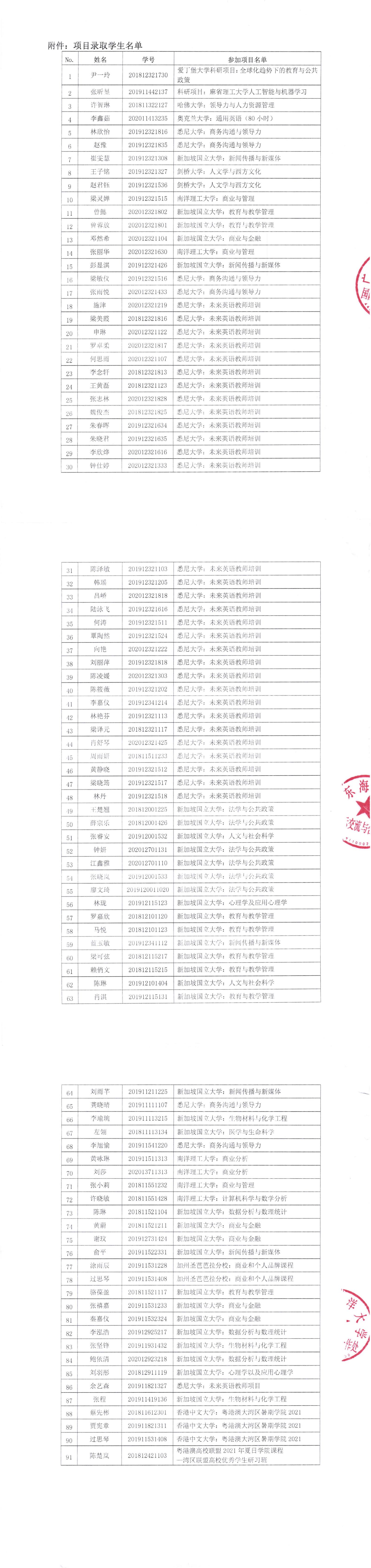 2021年暑假线上国际交流学习项目录取学生名单公示