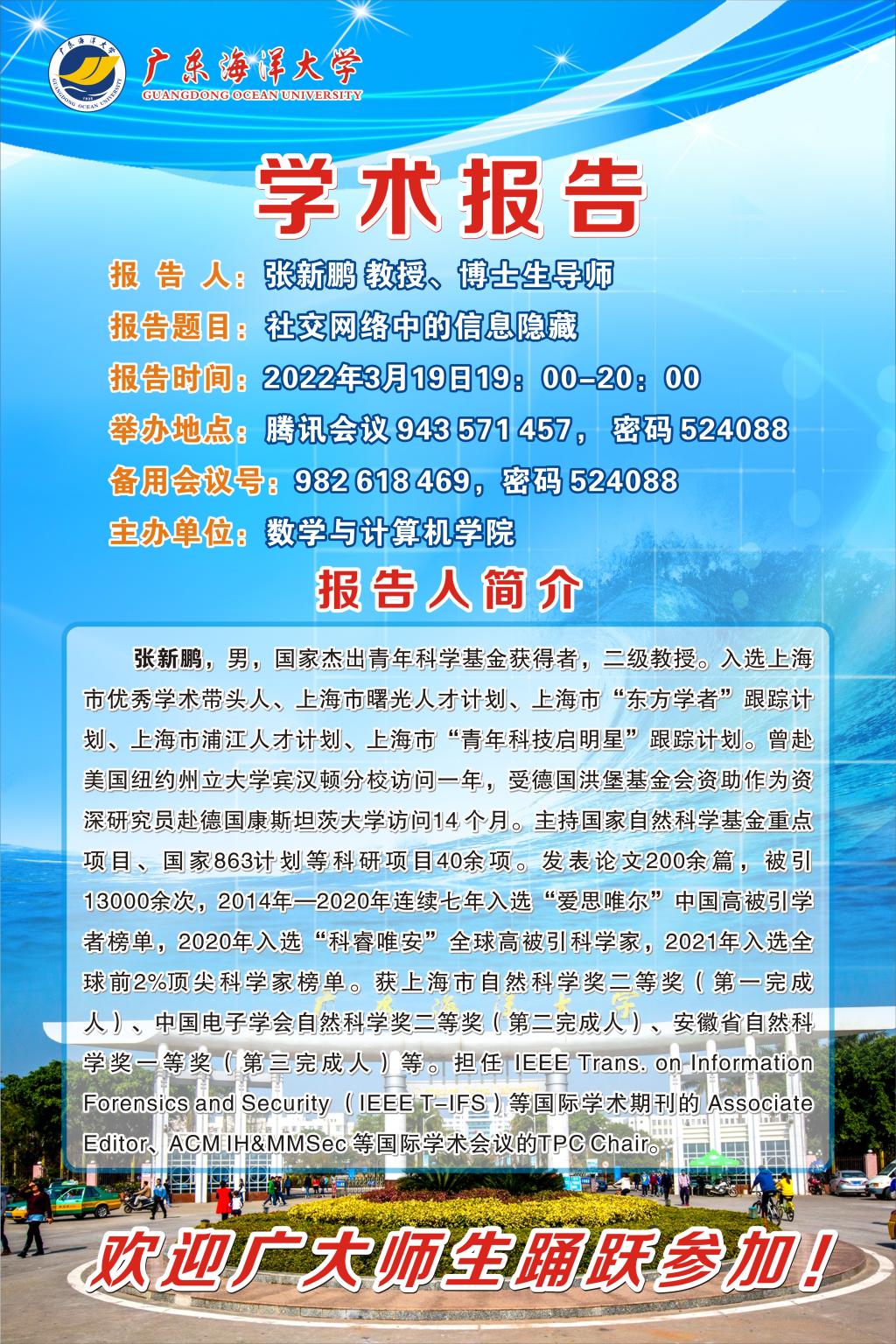 地址:中华人民共和国 广东省 湛江市 麻章区 海大路1号 邮编:524088 邮箱: xzb@gdou.edu.cn